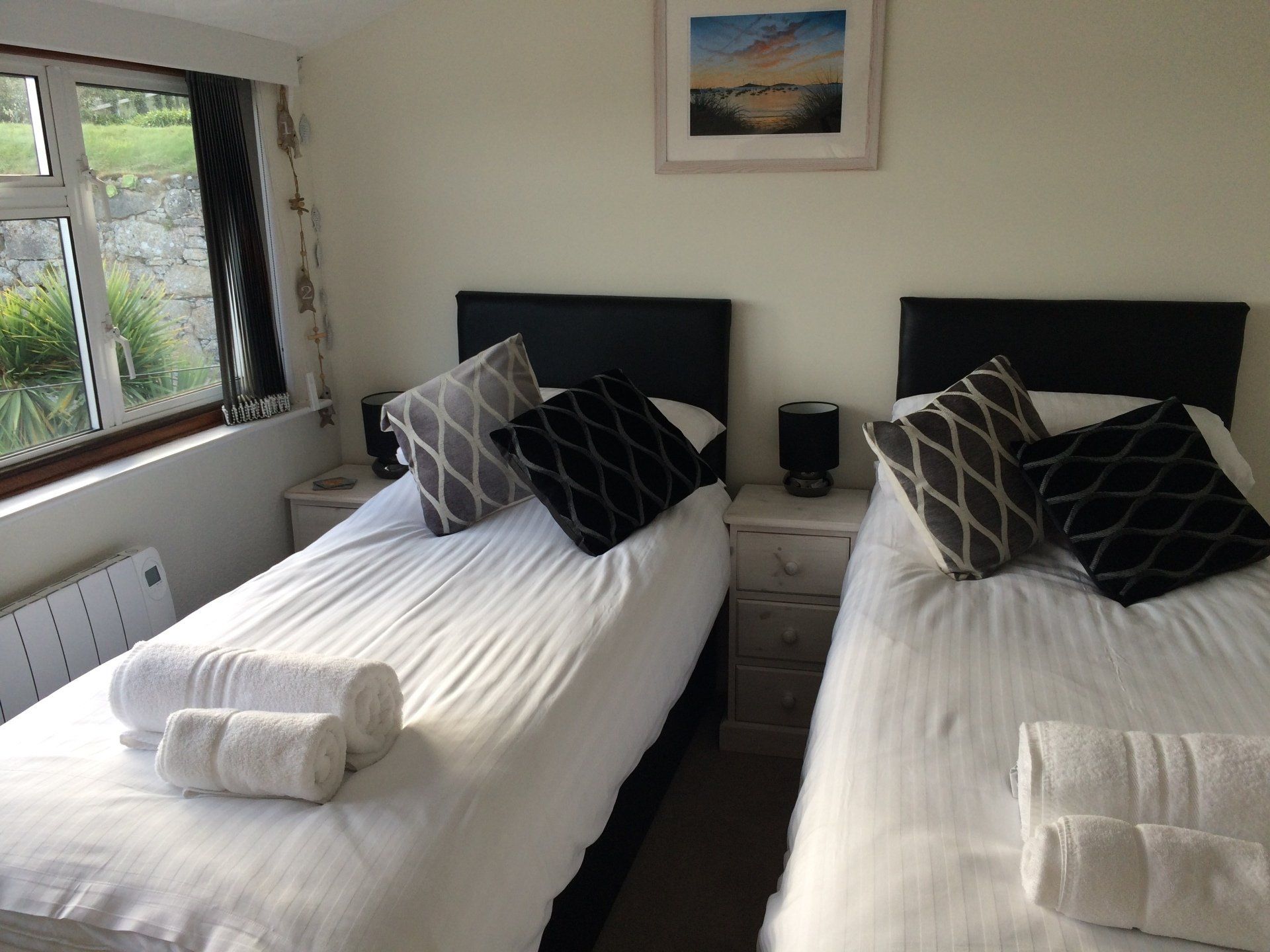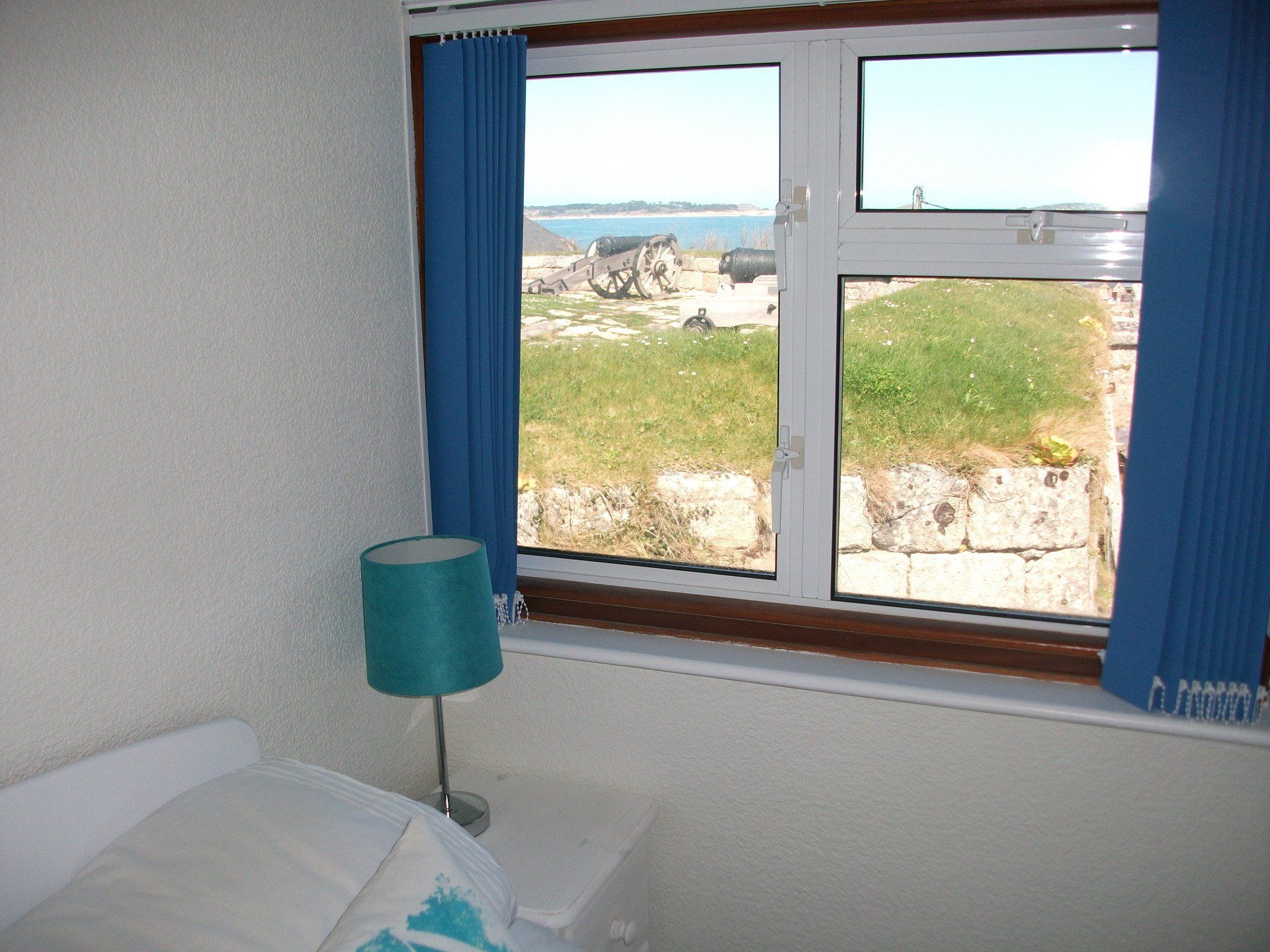 Fairview has its own front door with stairs leading to the living/dining room which has views of the Garrison, Peninnis Head and Porthcressa Bay. This adjoins a well equipped, galley style kitchen which has extensive views including the harbour, Bryher, Tresco, Round Island, St Helens, Tean and St Martins (and a little bit of Samson!). A small corridor off the living room leads to the 2 bedrooms and the main bathroom (shower, toilet, sink). Bedroom 1 has a double bed (4’6”) with ensuite shower room (shower, toilet, sink). Bedroom 2 is slightly larger with a kingsize (5ft) bed that can also be configured as twin single beds if required. Bed linen, towels and hairdryers are provided.